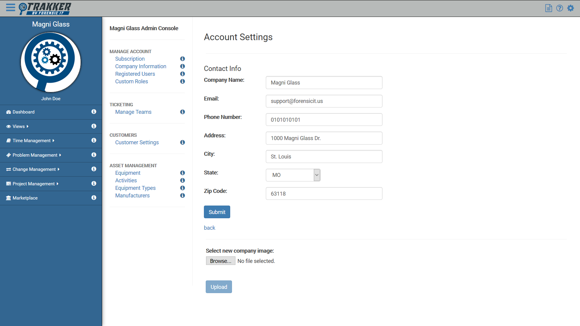 Your GoTrakker Company Account is the user and billing control for your ticketing system. The Company Account management is divided into 4 main elements in the admin console. The 4 elements are "Subscription", "Company Information", "Registered Users" and "Custom Roles".