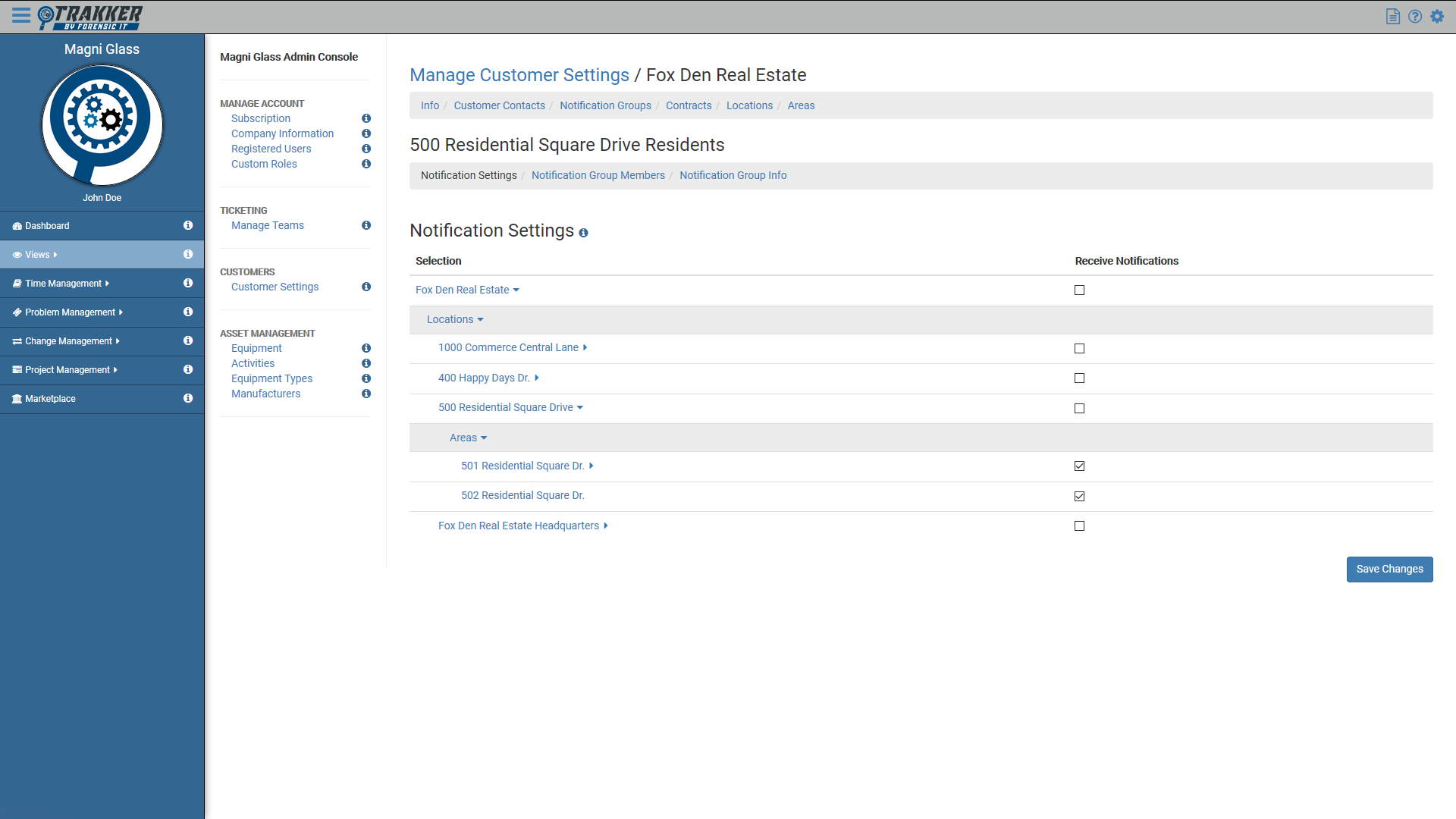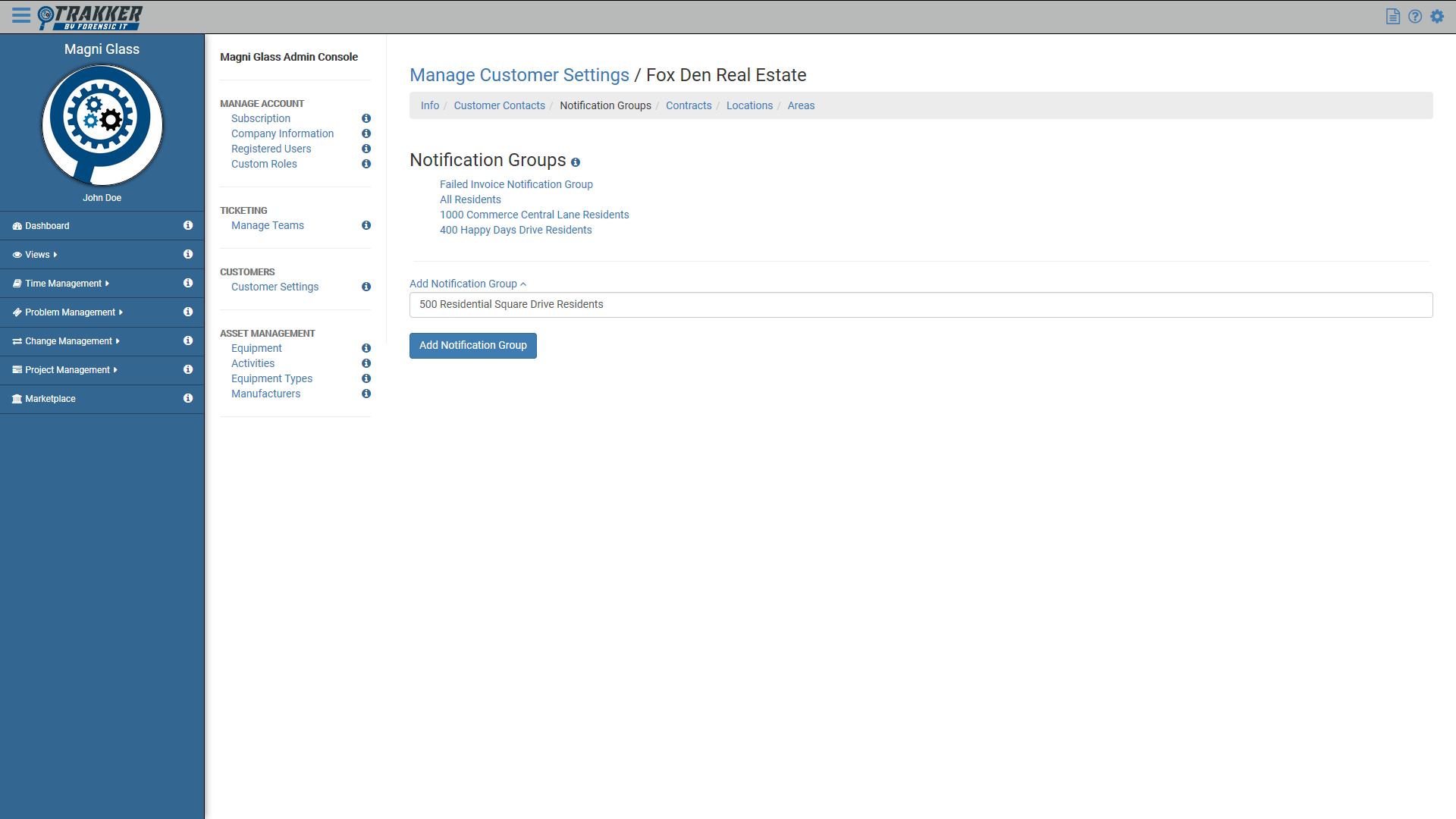 dropdown on tickets. These users are able to be added to and organized into notification groups