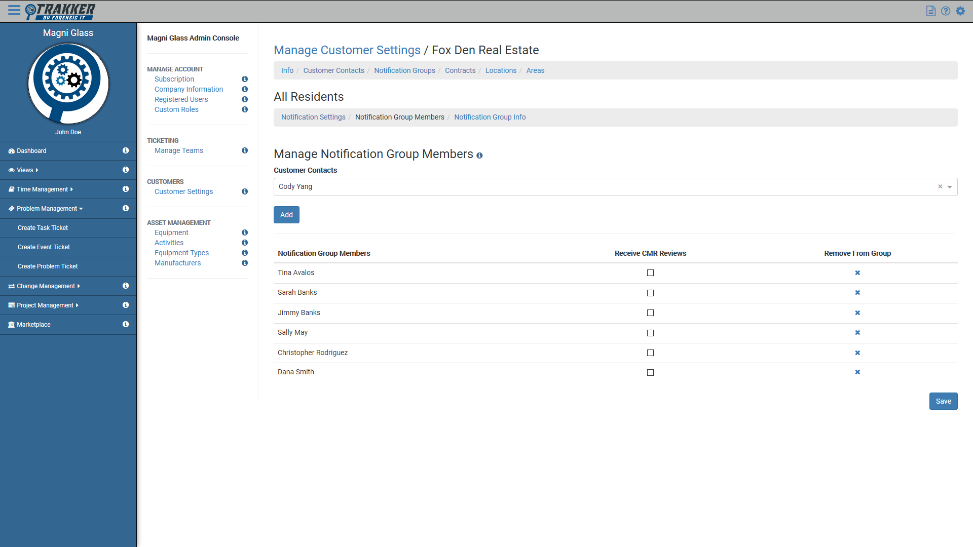 When the row has been filled out, select the Save button to finish adding the Customer Contact.