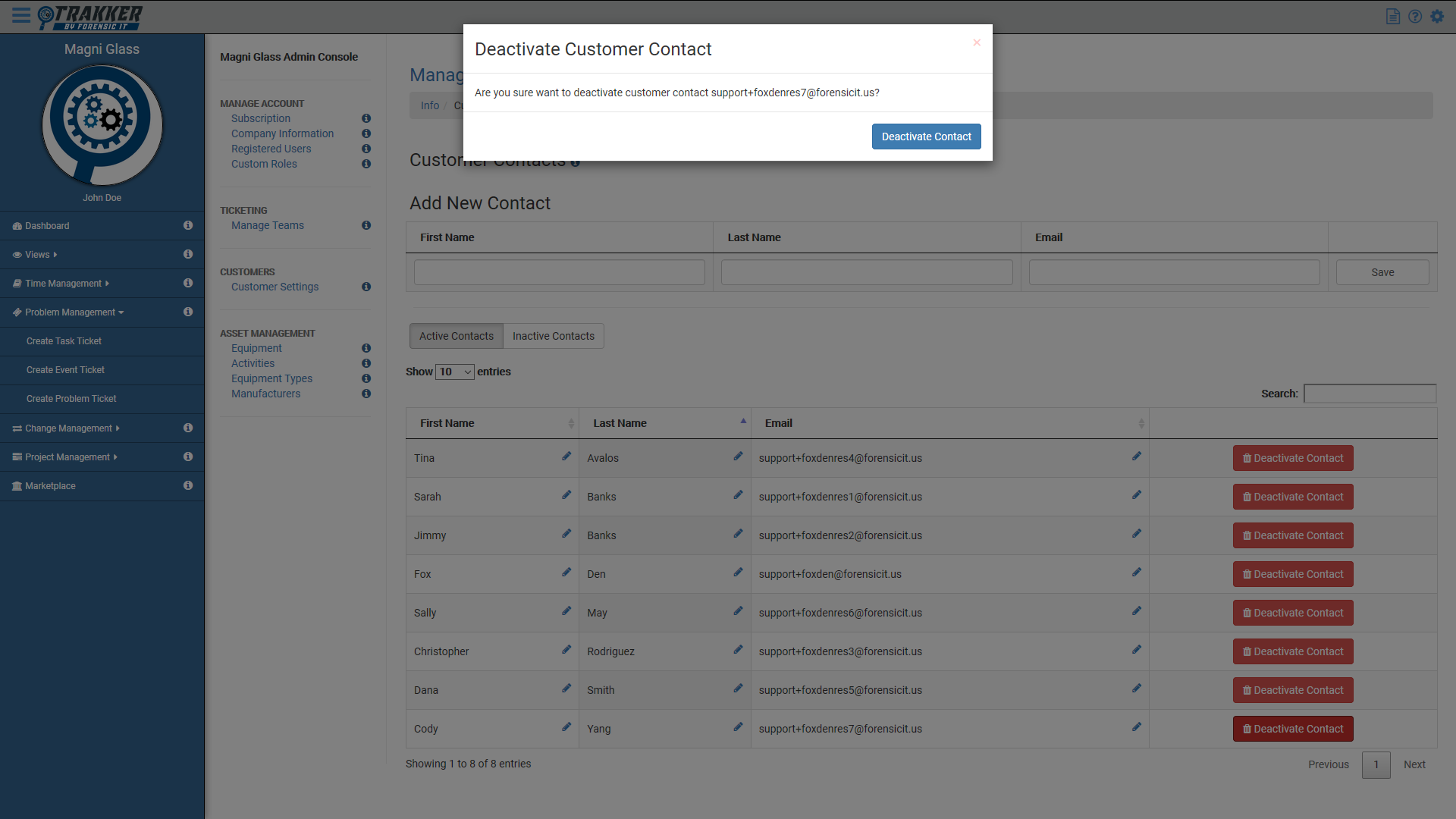 Select Deactivate Contact on the confirmation modal to complete the deactivation.