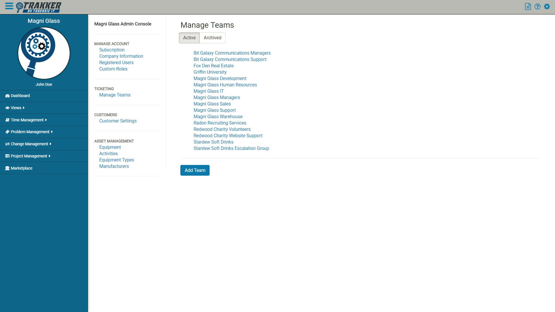 - Navigate to the admin console for the organization and select Ticketing > Manage Teams.